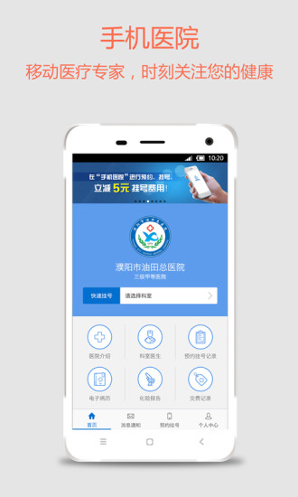 手机医院是帮助快速挂号,医院就诊流程引导,管理就诊人的门诊记录和病历信息、交费明细,从而可以让大家更加关注亲人和自己的健康。