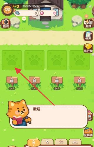 2、进入游戏后,来到游戏主场景,可看到带有爪印标识的地块。