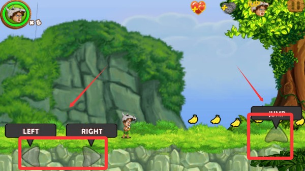 1、开始游戏后,左侧按键可以控制角色移动,右侧则是跳跃。
