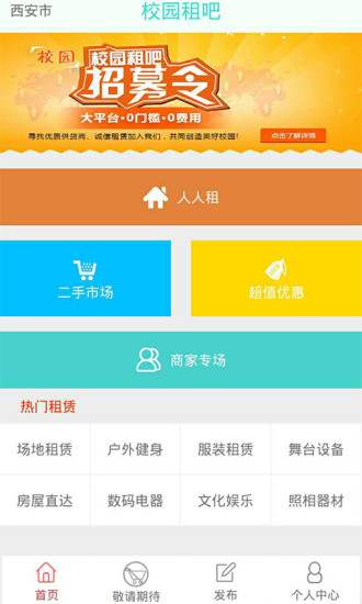 租吧(校园版)是租吧下的一款租赁应用,针对在校大学生开发的app,让校园生活更便捷,我们的宗旨是人人租赁,诚信天下。学生的闲置物品一键发布求租,资源利用,校园之间的供需更简单明了,一键查询想租物品,想租就租。用户审核严谨,排出了校外大量中介商家。