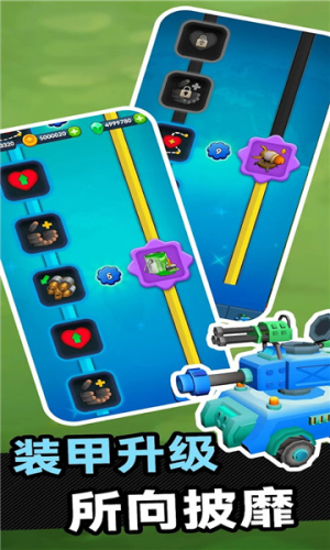 3、成长体系完善平衡,通过战斗获取资源可解锁新武器和技能。升级路线多样自由,既能专注强化单一属性,也可发展均衡全面的战车配置。