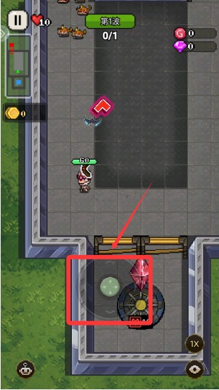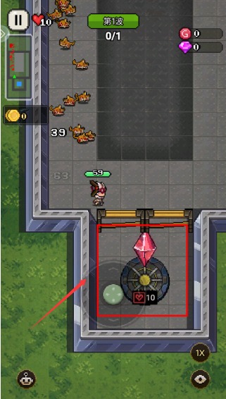 3、关卡需守卫住图示的宝石,若宝石被击溃则游戏结束。