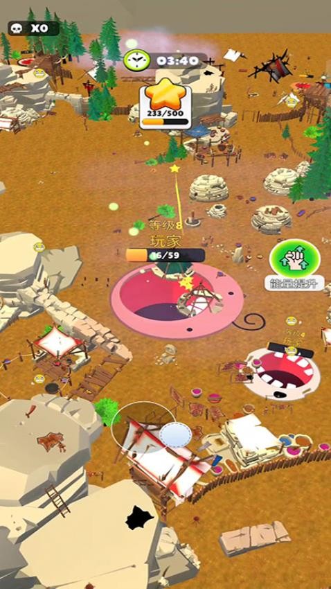 1、核心操作采用直观的滑动控制,手指划动决定移动方向和速度,吞噬按钮锁定合适目标,长按可进行大范围吞噬。