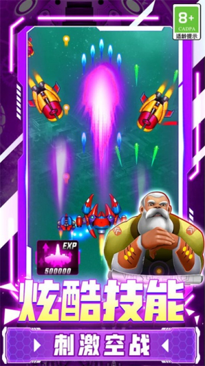 2、丰富的技能组合,每架战机拥有专属必杀技。通过连击积攒能量,把握释放时机扭转战局。