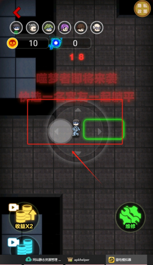 1、通过手指滑动操控角色走位,灵活躲避猎梦者的追击,精准移动到需要防守的关键位置。