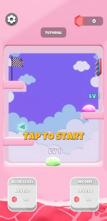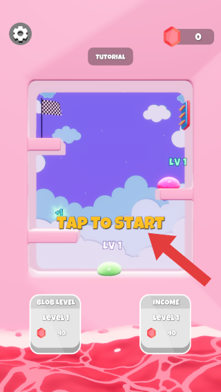 1、画面中【TAPTOSTART】意思是点击开始,提示玩家点击屏幕开启游戏,当前也都是LEVEL1,数值为40从画面风格看,色彩粉嫩可爱,是休闲类型。