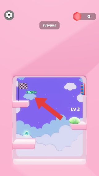 3、表明到达此处为关卡目标达成点,LV2代表当前等级为2,从画面风格和元素推测是跳跃类休闲类型,玩家需操控角色在平台间跳跃抵达终点。