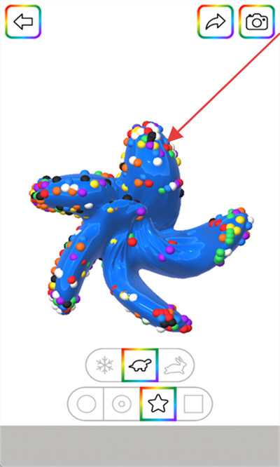 3、完成造型塑造后,如对作品满意,按红色箭头指向点击相机图标,即可对作品进行拍照保存。