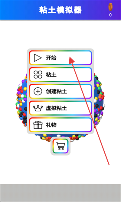 1、打开【粘土模拟器】,按红色箭头指向点击【开始】按钮,进入粘土模拟创作环节。