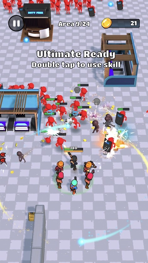 3、成长系统:通过完成战斗获得经验值提升等级,解锁新武器与技能,使用金币购买基础资源,钻石可购买高级武器与加速升级,支持观看广告免费获取随机资源。