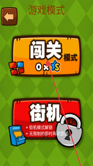 2、在游戏模式选择界面,依照红色箭头指引,点击【闯关模式】,开启游戏挑战之旅。