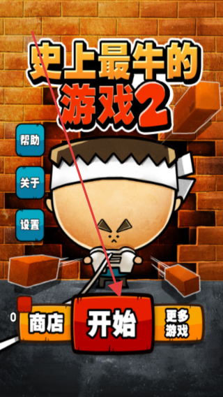 1、打开史上最牛的,按红色箭头指向点击【开始】按钮,进入游戏模式选择界面。