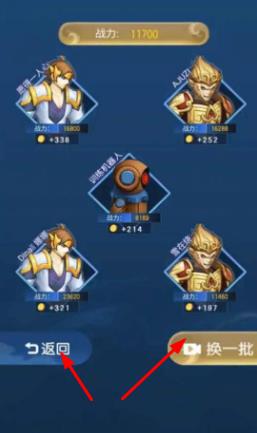2、在英雄界面,可点击“换一批”(红色箭头所示)刷新英雄列表,选择心仪的机甲英雄出战。