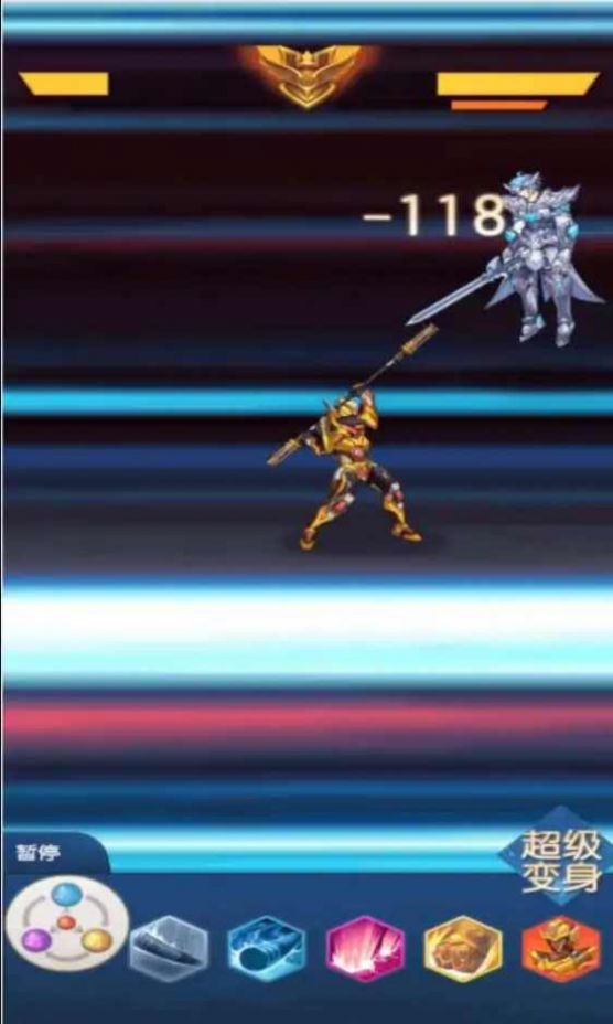 3、进入战斗前,点击“超级变身”(蓝色菱形按钮)激活机甲特殊形态,增强战斗能力。