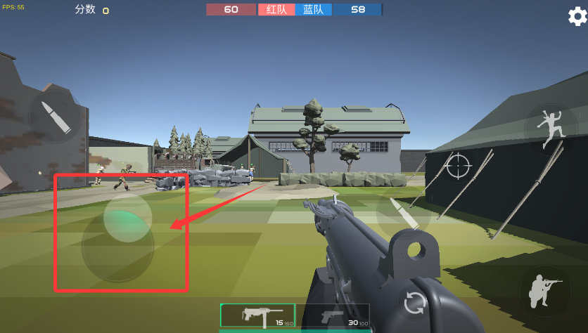 2、通过手指滑动控制角色移动,灵活穿梭于掩体之间,逐步向目标交战区推进。