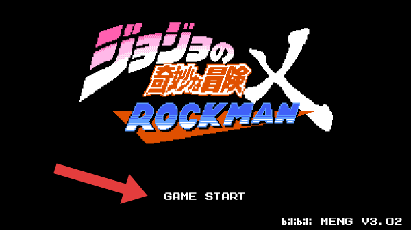 1、结合ROCKMAN(洛克人)可知是融合了这两个IP元素的游戏,【GAMESTART】意思是开始游戏,点击即可进入。