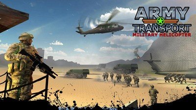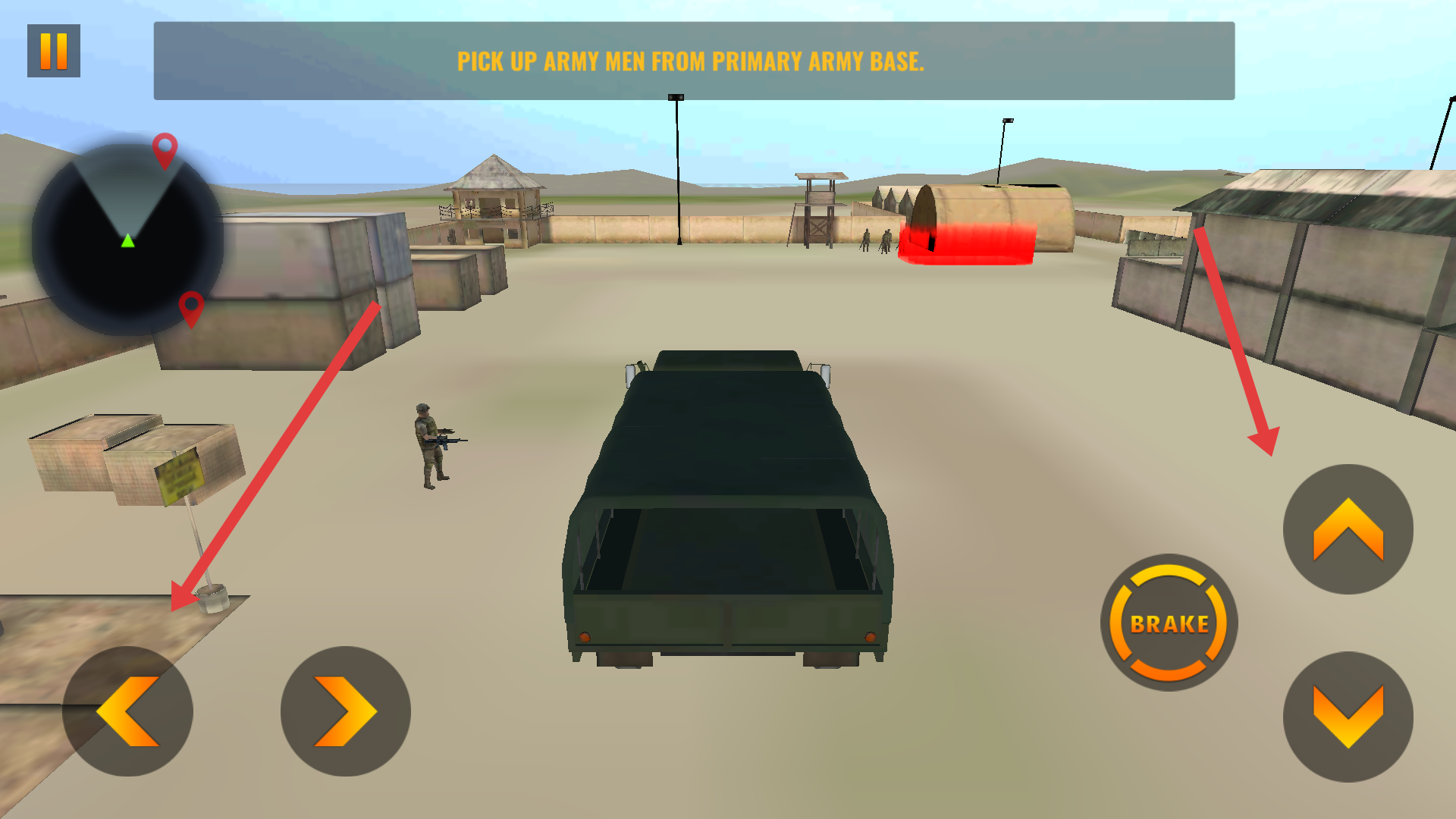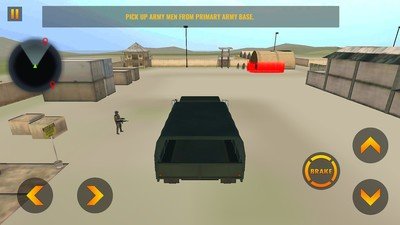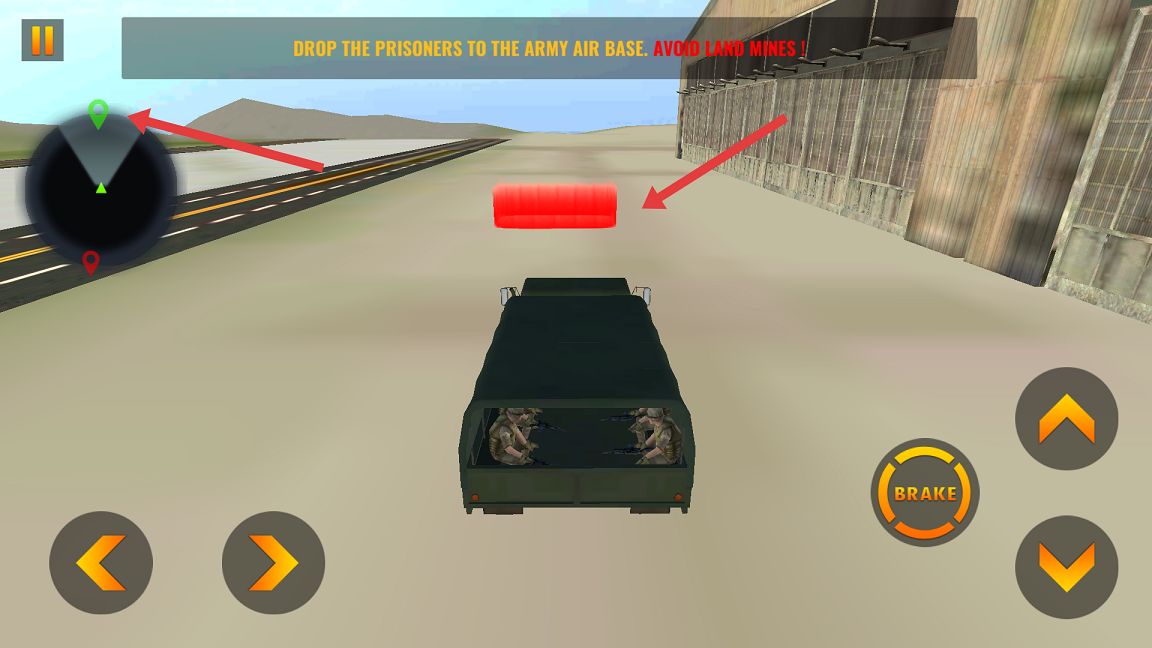 1、开车送士兵到机场,用虚拟摇杆控制直升机完成起飞、悬停、俯冲等动作。