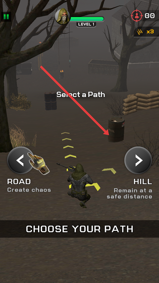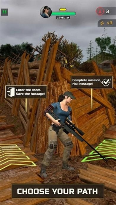 1、左手稳住呼吸右手扣扳机,开局游戏引导,路线选择遭遇随机事件。