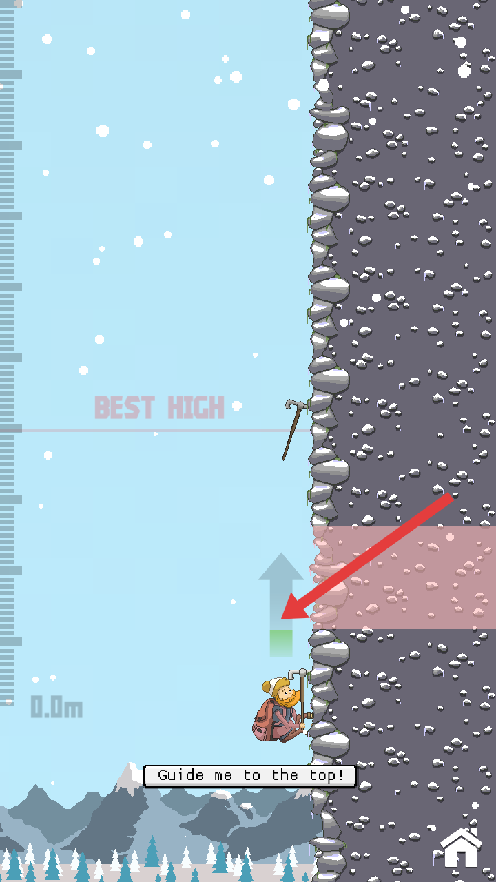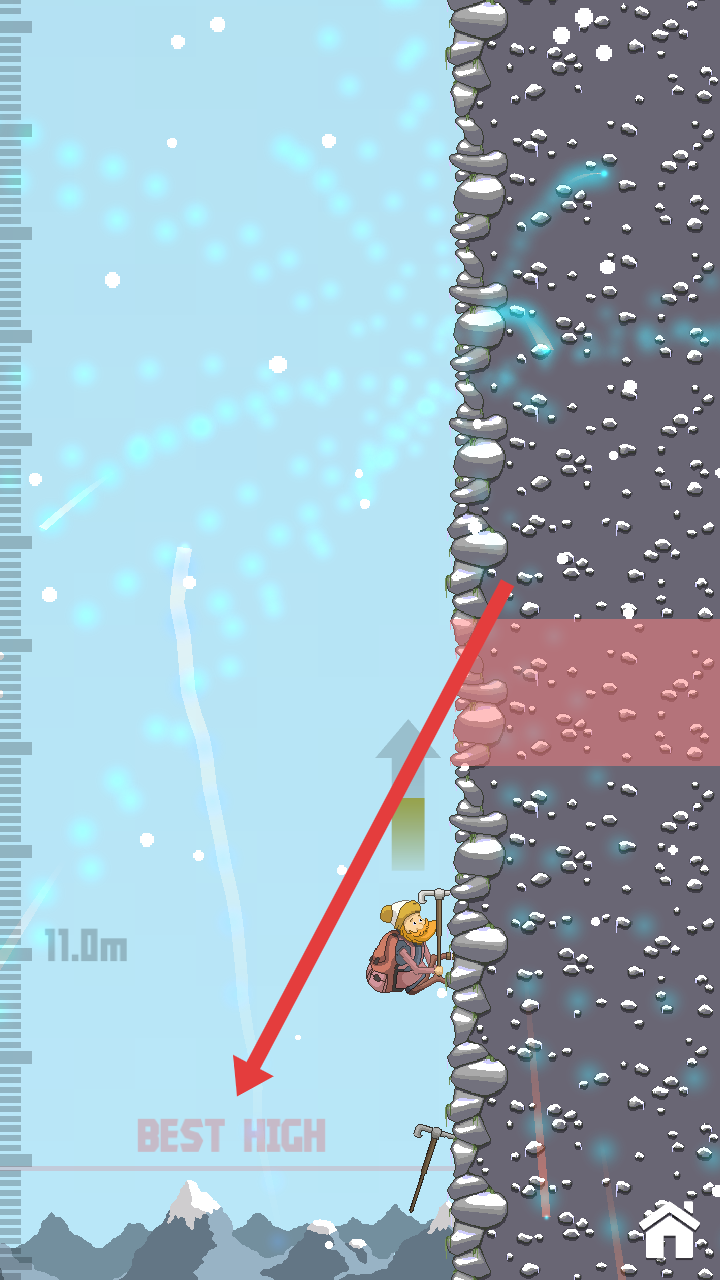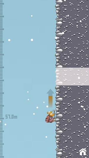 2、极简操作机制:采用点击屏幕控制攀爬跳跃的简单操作方式,无需复杂技巧即可上手,适合各年龄段的用户快速融入,轻松体验攀岩的基础乐趣。