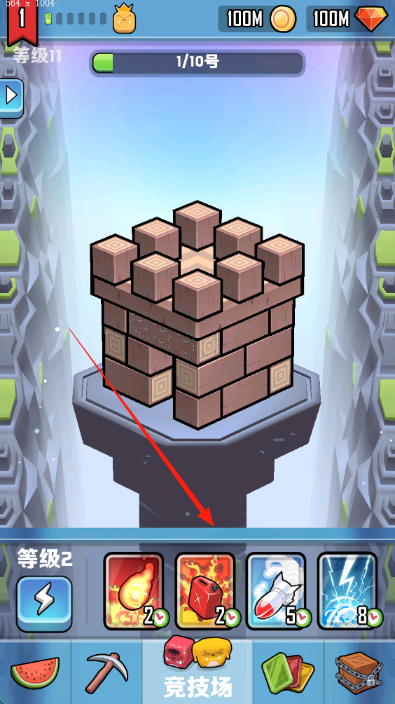 1、在游戏中,面对砖石建筑,可选用下方等级2的技能卡片,如火焰、火箭等,对建筑进行破坏。