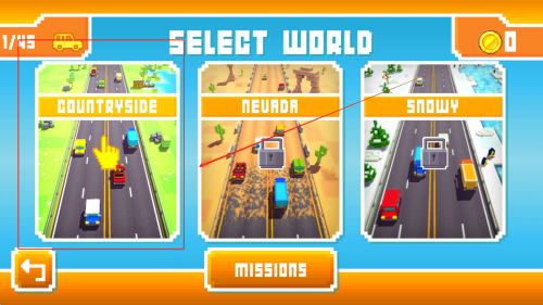 2、多样化场景设计,设置沙漠、雪山、城市三大主题地图。每个场景都有专属的障碍布局与视觉风格,配合动态天气系统,营造多变驾驶体验。