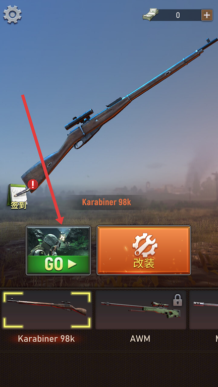 1、打开游戏主界面点击下方的GO即可进入,左手调焦距右手扣扳机。