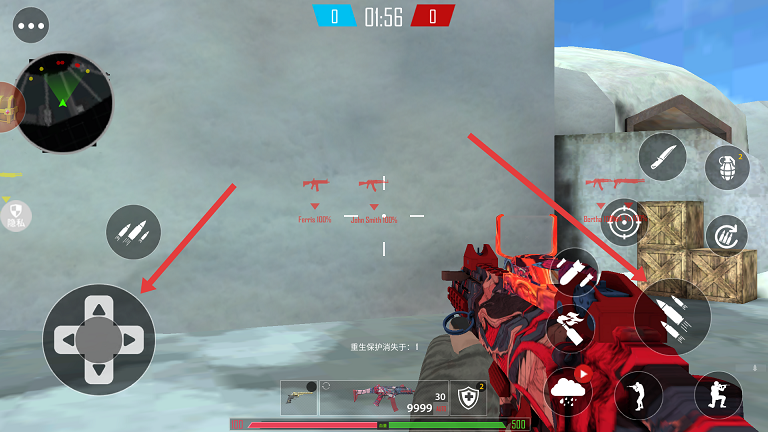 3、注意左上角小地图,别让包围了。遇到闪着金光的道具先抢为敬,说不定能体验30秒真男人模式。