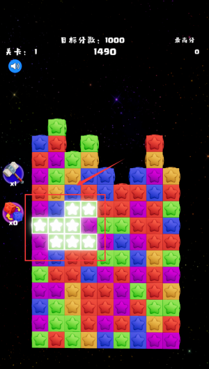 1、基础消除玩法要求玩家找到三个或以上同色星星连成一线,直线或直角连接都有效。每次消除会为周围星星充能。