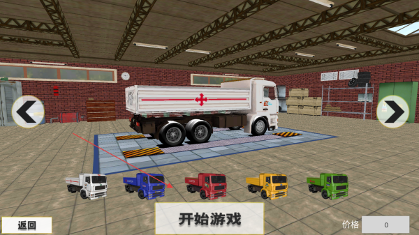 2、在车辆选择界面,挑选心仪的卡车(如白色油罐车),点击【开始游戏】按钮,进入游戏驾驶场景。