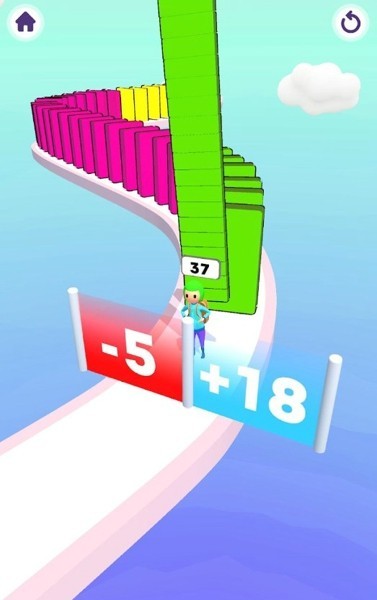 1、进入游戏后操控角色向前奔跑,滑动屏幕躲避障碍物,撞击赛道上的多米诺骨牌进行收集,注意避开反向箭头等干扰元素。