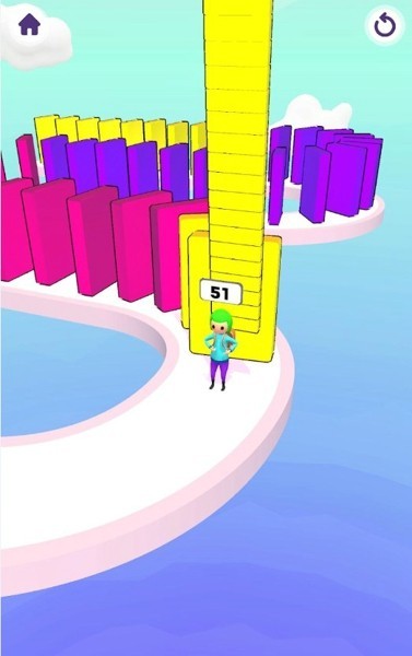 2、穿越带有+号的门框增加骨牌数量,抵达摆放区域后点击屏幕放置骨牌,规划曲线、螺旋等造型提升倾倒美感。