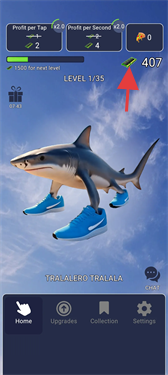 3、玩家可在“Upgrades”等功能模块中,使用金币对角色属性或游戏功能进行升级,提升游戏表现和收益获取速度。