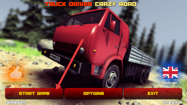 1、游戏开始界面,点击【STARTGAME】按钮,进入卡车驾驶游戏,开启在崎岖道路上的运输挑战。