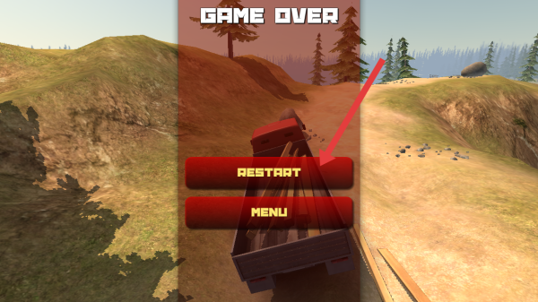 3、游戏失败后,点击【RESTART】按钮,重新开始游戏,再次尝试完成运输任务,提升驾驶技巧。