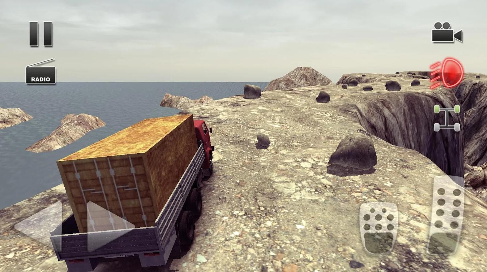 2、在游戏过程中,操控卡车躲避路上的石头等障碍物,安全运输货物,注意路况和操作控制。