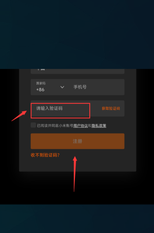 3、收到验证码后,点击输入验证码,然后点击注册即可。