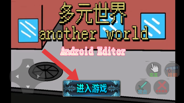 1、画面采用像素风格,下方【进入游戏】按钮可让玩家开启,玩家可通过这些操作与游戏世界互动、施展技能、进行战斗及控制角色移动方向,体验休闲冒险玩法。