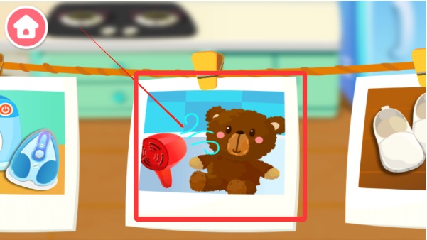 2、洗衣模块中,从开启洗衣机、晾晒衣物到叠整衣服,每个步骤都由孩子亲自操作,锻炼动手能力与耐心。