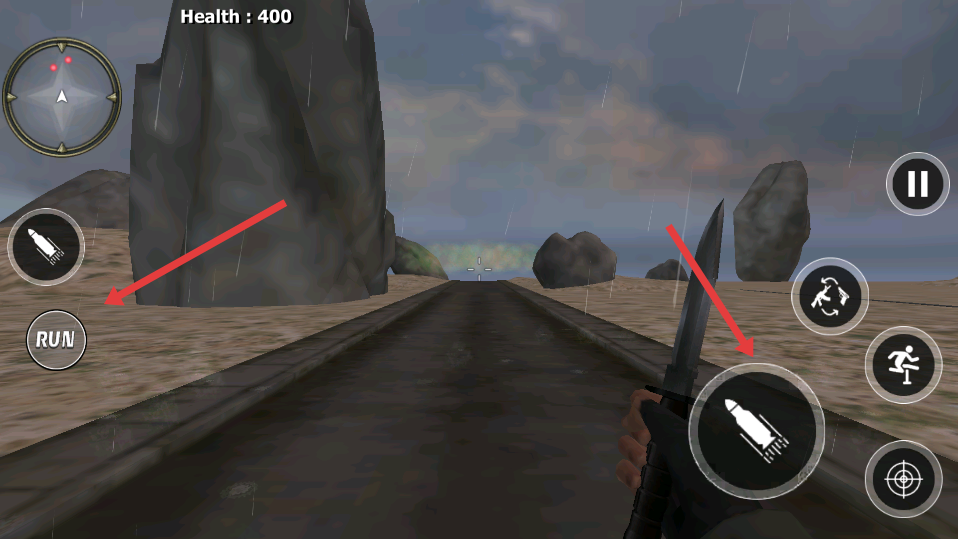 3、小地图红点显示敌人位置,点RUN快速移动,小刀流注意隐藏。