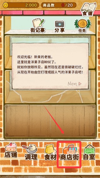 3、点击底部的商业街就可以采购各种食谱来制作美味的甜品了。