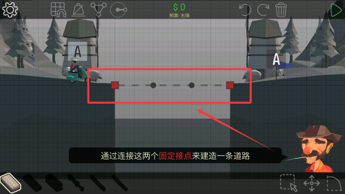 3、游戏提供多种建筑材料供玩家选择,木头、绳索、钢材、道路、液压杆、钢索等,不同材料的搭配能打造出风格各异的桥梁。