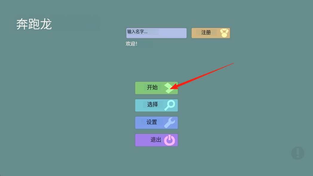 1、在“奔跑小恐龙”游戏主界面,若无需注册,直接点击绿色“开始”按钮,进入游戏。