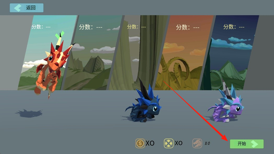 3、当出现小龙选择界面,挑选心仪小龙后,点击“开始”按钮,继续开启新的跑酷挑战。