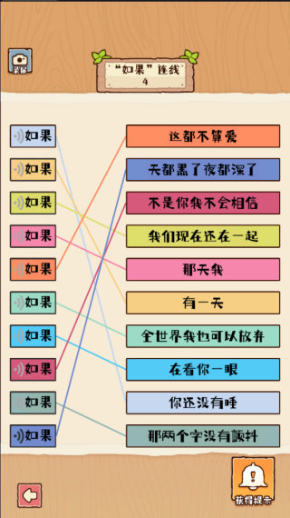 1、玩家需将相同或相关的文字进行连线,完成关卡任务,考验文字关联和匹配能力。