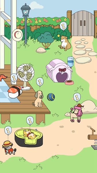 1、宠物环绕沉浸式体验:模拟真实饲养宠物的睡前场景,狗狗们或蜷成一团或伸展四肢,玩家可缩放画面观察细节,伴随呼噜声等白噪音,营造被宠物包围的安全感。