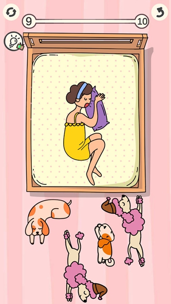 3、轻松放置策略布局:核心玩法为将宠物合理摆放到床上,需根据狗狗体型与床面空间规划位置,避免重叠或掉落,后期关卡加入异形床面与多品种宠物混合。
