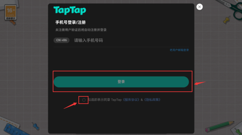 2、注册好之后,点击勾选同意选项,然后点击登录。
