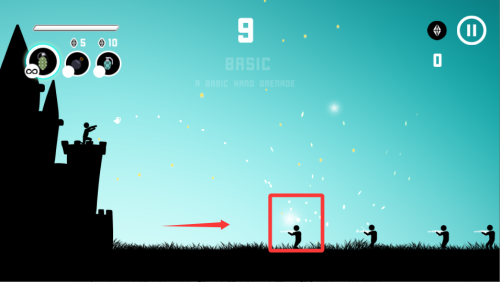 1、进入游戏先熟悉操作,滑动利用抛物线来瞄准敌人,松开后释放炸弹。