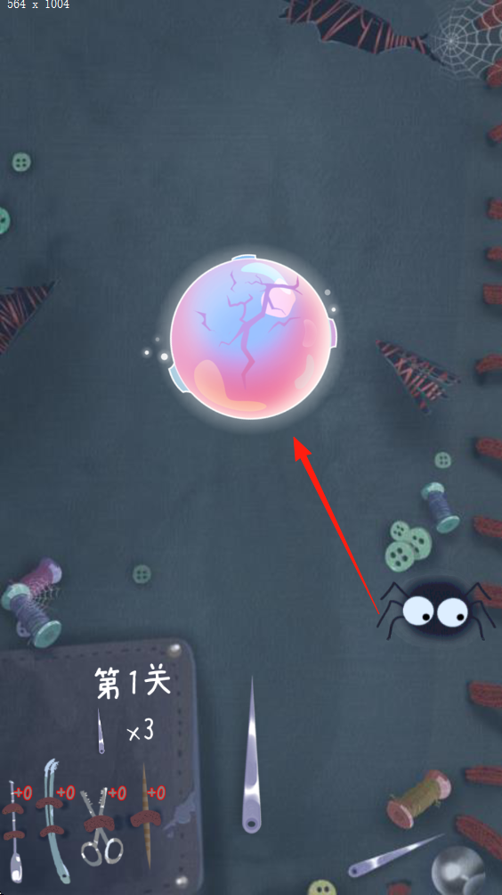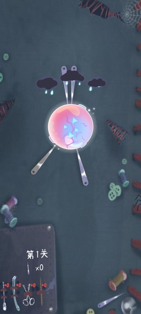 1、在关卡界面,对带有裂痕的球体进行相关操作,将针插进球体,完成第1关任务。