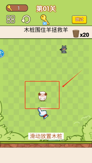 1、玩家在有限的空间内,通过拖动木桩来搭建防御工事,必须运用智慧与策略,以有效阻挡狼群的进攻。精确的布局能力至关重要,决定胜负。